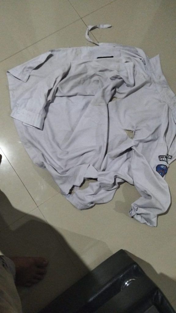 Seragam Sekolah terlihat robek akibat aksi Perundungan oleh Siswa SMKN 2 Seluma, Senin (03/11/2025).